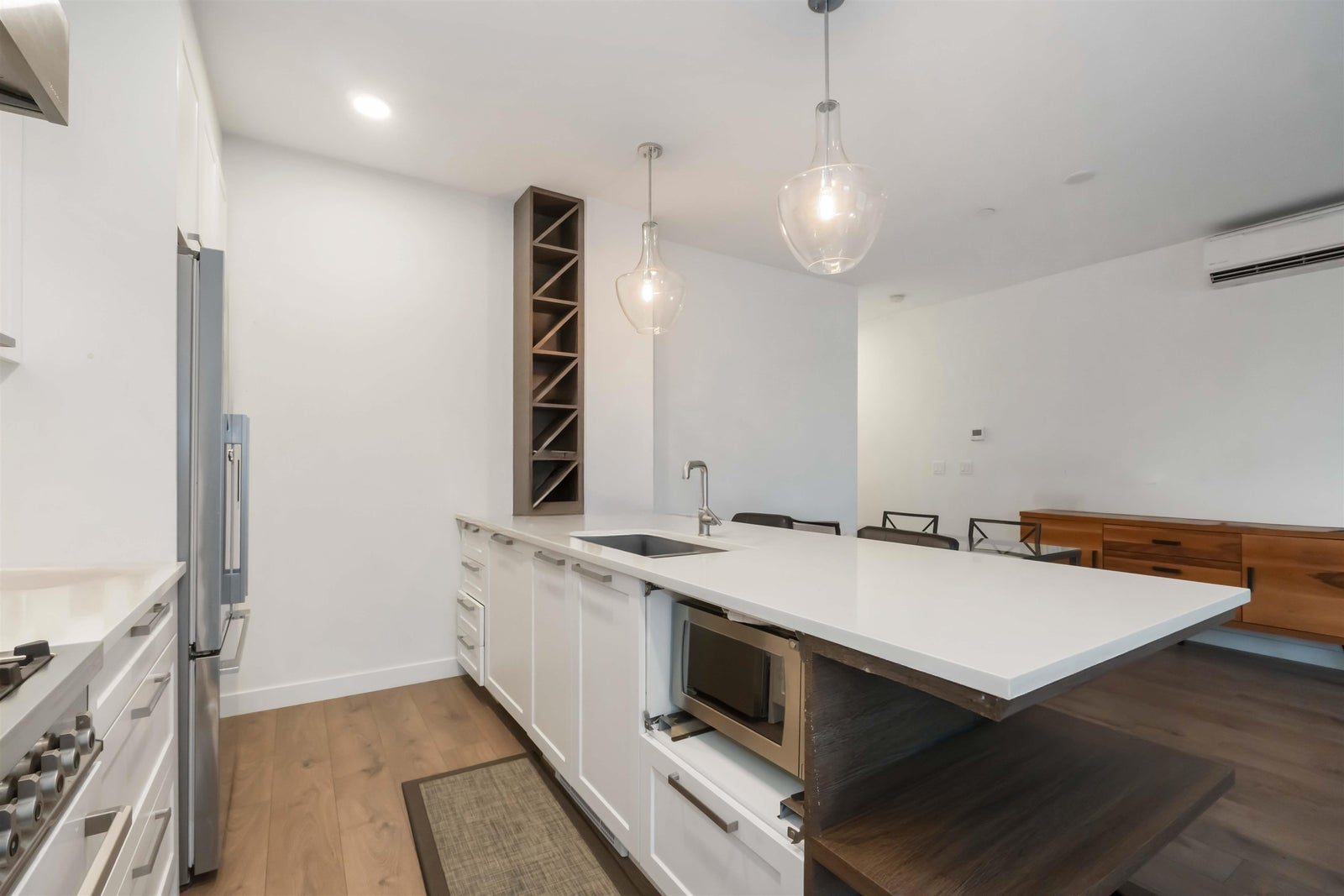 The Residences at Gateway is the perfect place to start, downsize or invest! Abbotsford’s premier luxury condos offer upscale living & uncompromising quality. Very spacious & bright 2-bed, 2-bath suite features thoughtfully designed layout for convenient living plus large deck for relaxing & enjoying the mountain views! Premium finishings include linear natural-gas fireplace, air conditioning, marble backsplash, heated marble bathroom floors & wide-plank flooring throughout main living areas. Chef’s kitchen equipped with a Bertazzoni Professional Series gas range, Fisher & Paykel fridge & built-in wine storage. Enjoy unbeatable proximity to highways, UFV, hospital, shopping, restaurants, schools, parks & health services. Includes 2 parking & storage locker. Family & pet friendly building!